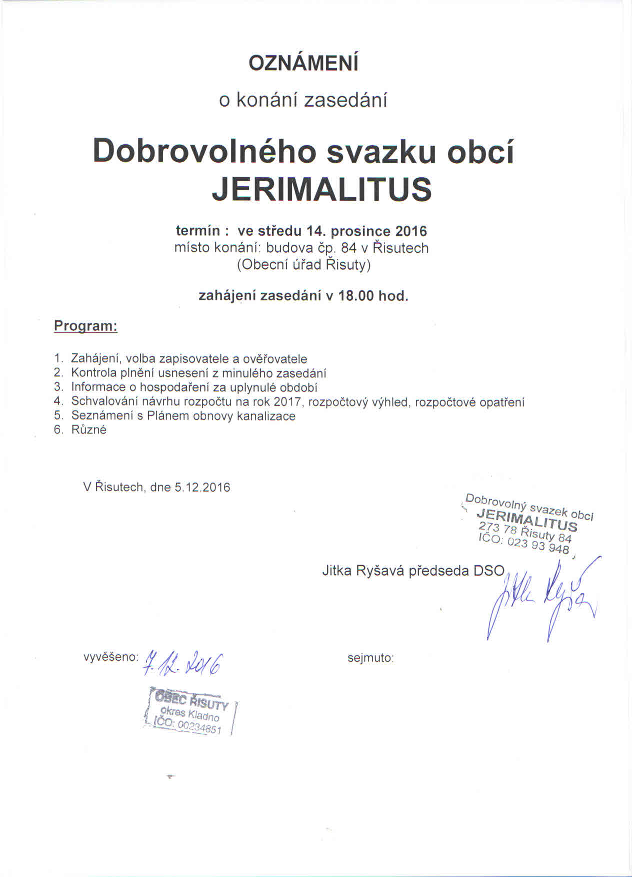 Zasedání DSO 14. 12. 2016
